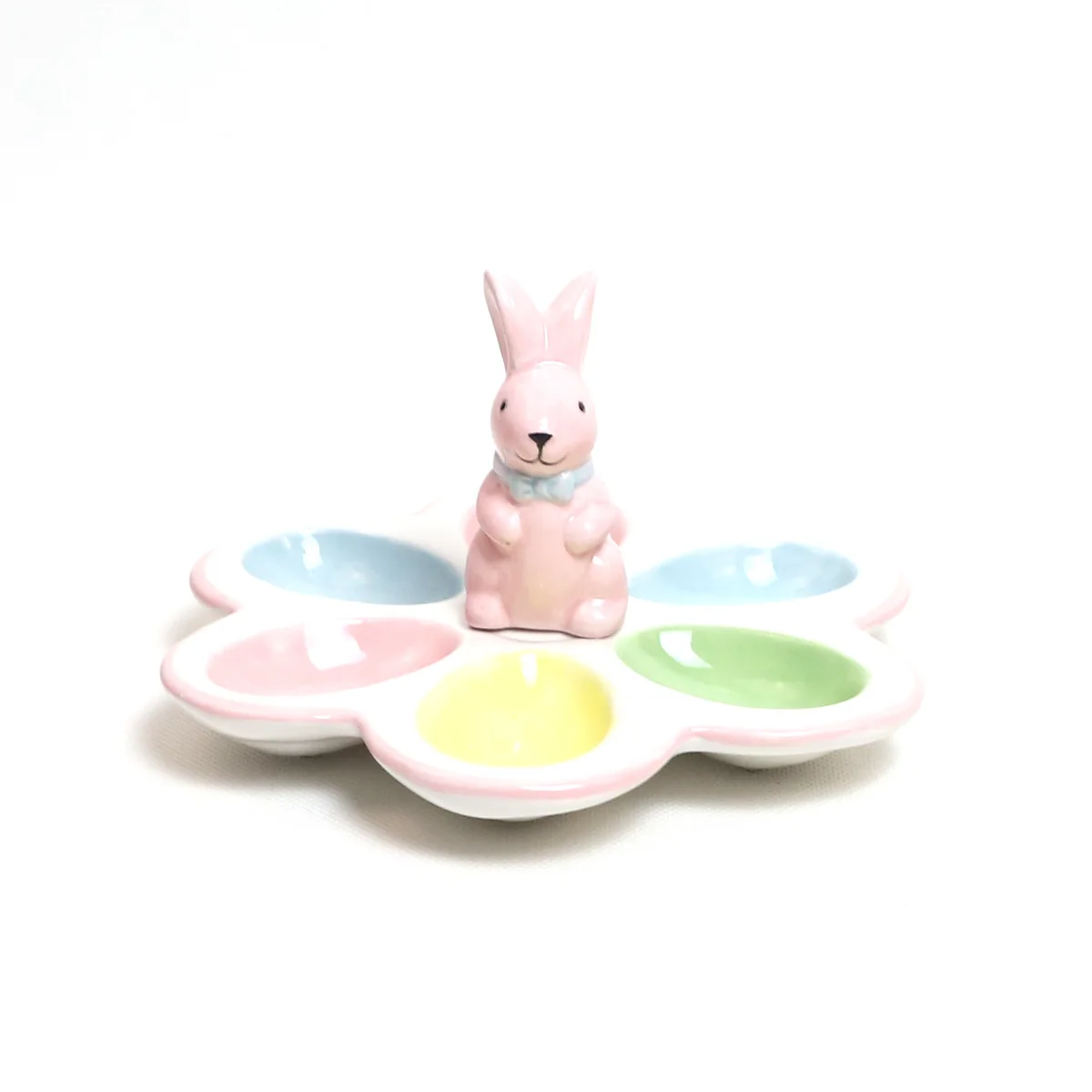 Keramická snídaněníčková deska ve tvaru květů s 3d figurkou králíčka roztomilý dárek k narozeninám pro děti opakovaně použitelná