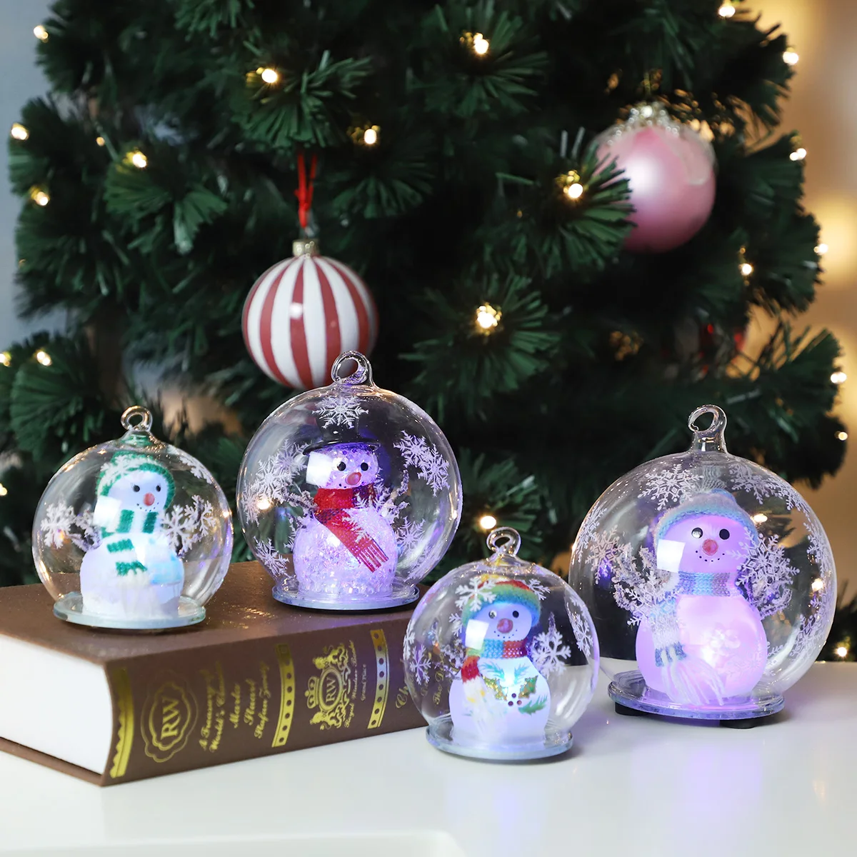 Joulu blasoitettu lasi sisäinen dekoraatio led puu valaistus kytkevä bauble kulut koristeet akku valaistu led-dekoraatio