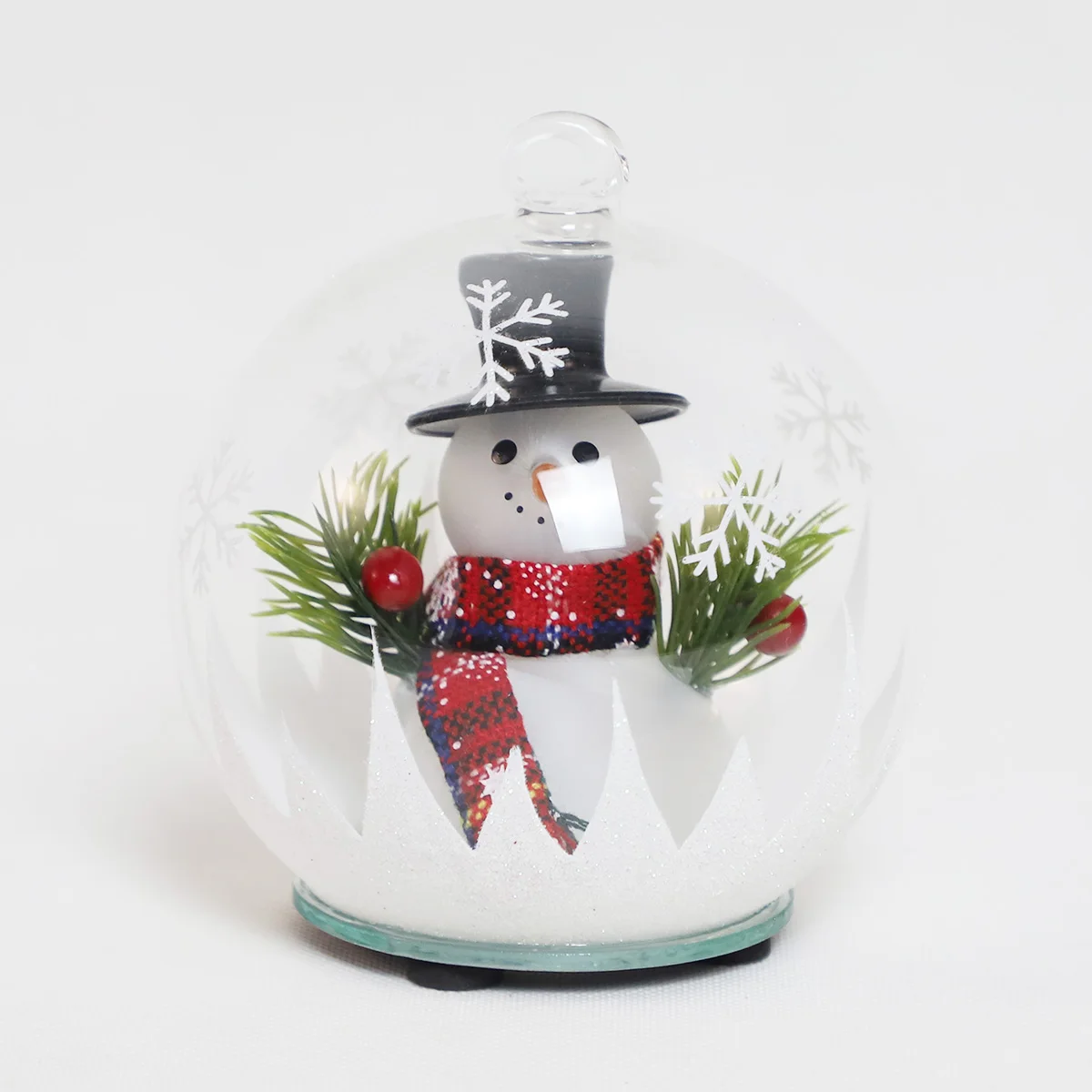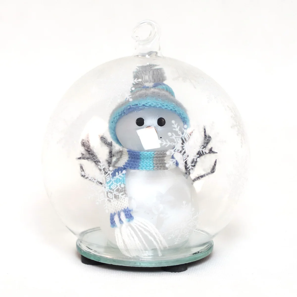 Suosittu led-valo julkinen lasi dekoraatio kula selvät joulupuun koristeet lasi lumihenkilö joulukuvausten