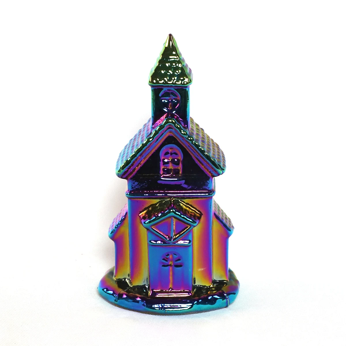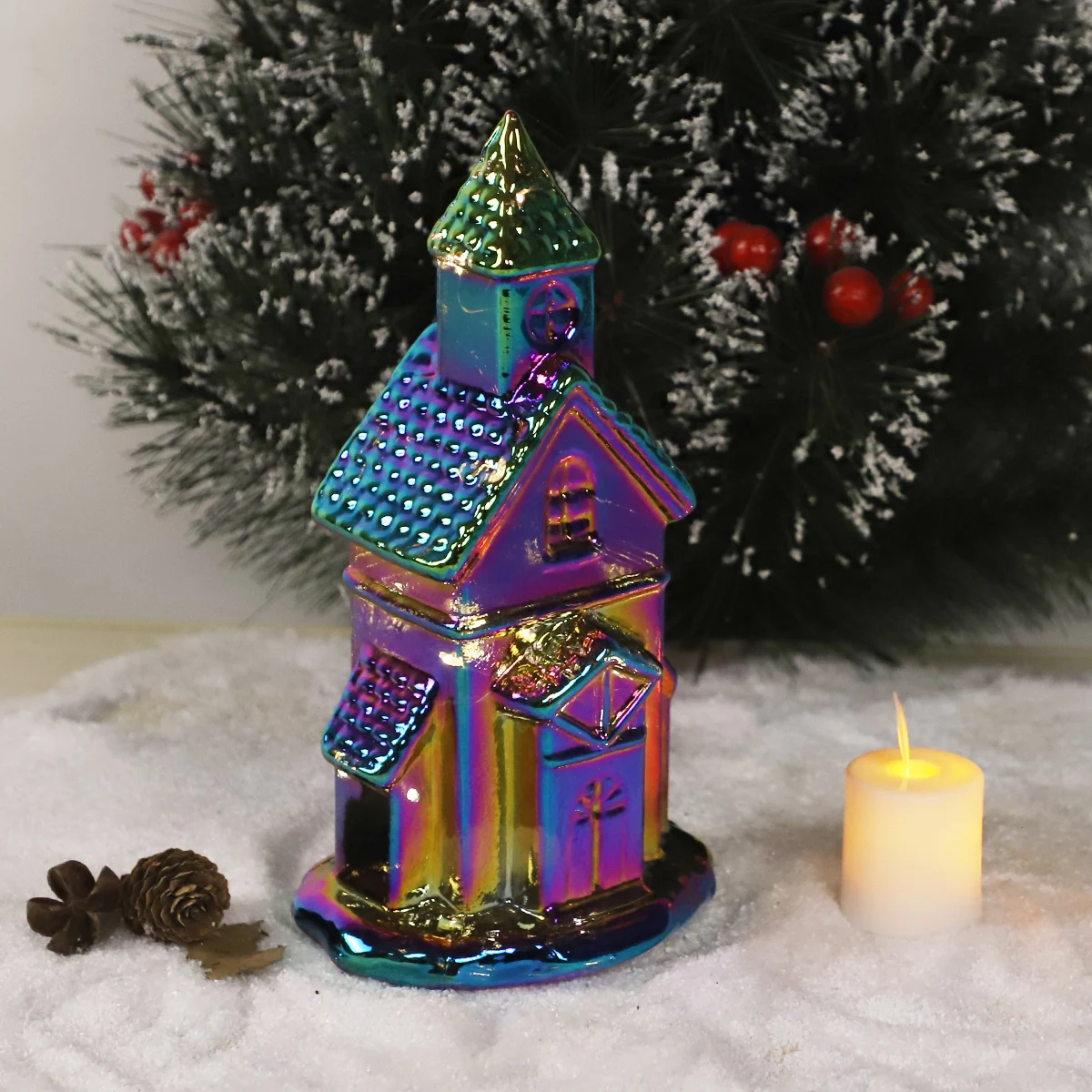 Handvinnið glóandi glas snefur fyrir borgu regnbogastofnun þröngt teeljós hús vetrar jólaborðsmyndir
