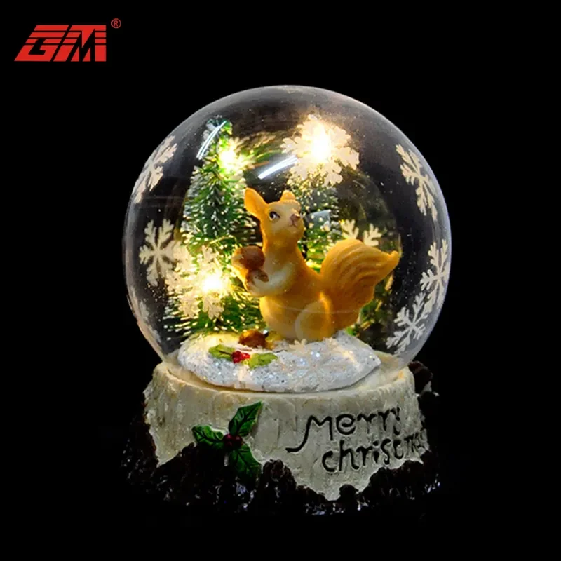 Mikið á vöru jólaukrala glas hændingur kunstsnær snjór kúla með led ljósi