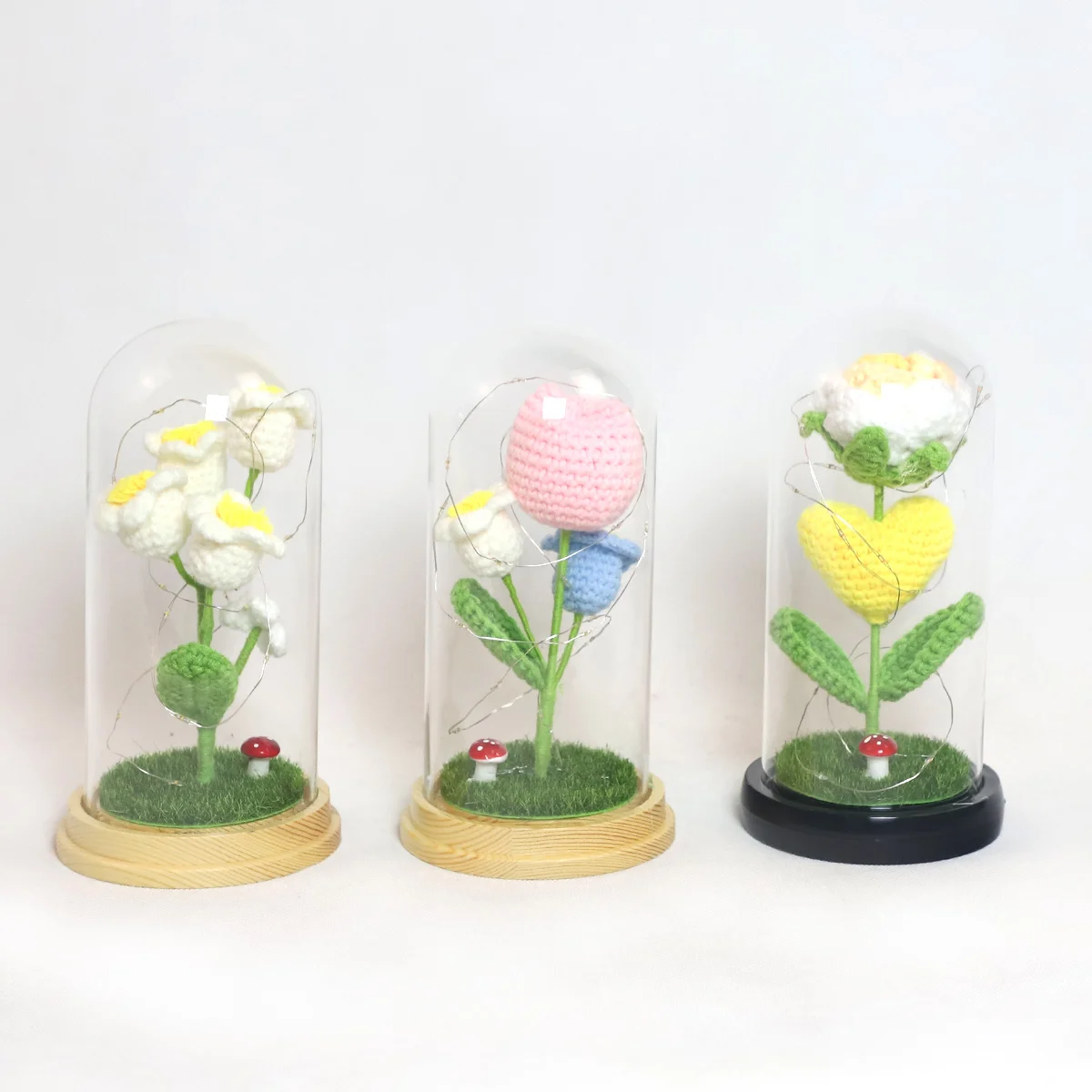 product customized crochet flowers rose lamp in glass dome beauty and the beast rose for mom-9
