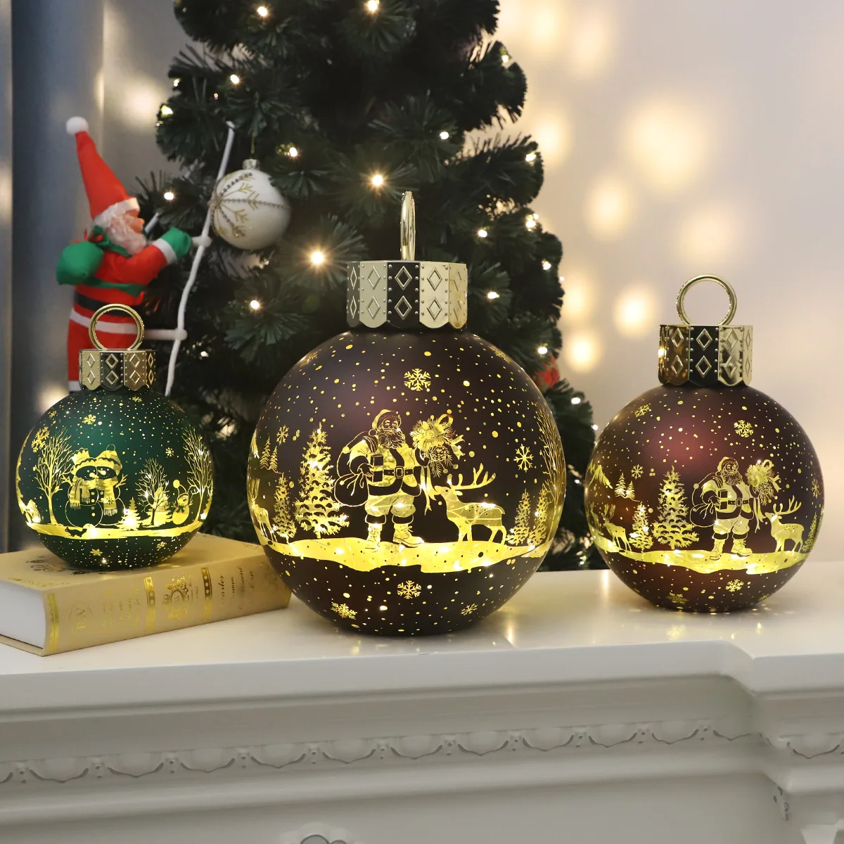 ลูกบอลคริสต์มาสรูปทรงกลม ลูกบอลแก้วคริสต์มาสพร้อมไฟ led สำหรับตกแต่ง
